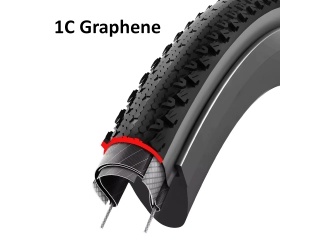 1C Compound - Con el fin de minimizar la resistencia a la rodadura y soportar mejor los pinchazos, el compuesto de caucho está infundido con grafeno. Con la ayuda de sus propiedades especiales, el material no sólo rellena eficazmente los huecos entre las moléculas de caucho, sino que también crea una estructura reforzada que es más ligera, más eficiente y también más duradera.