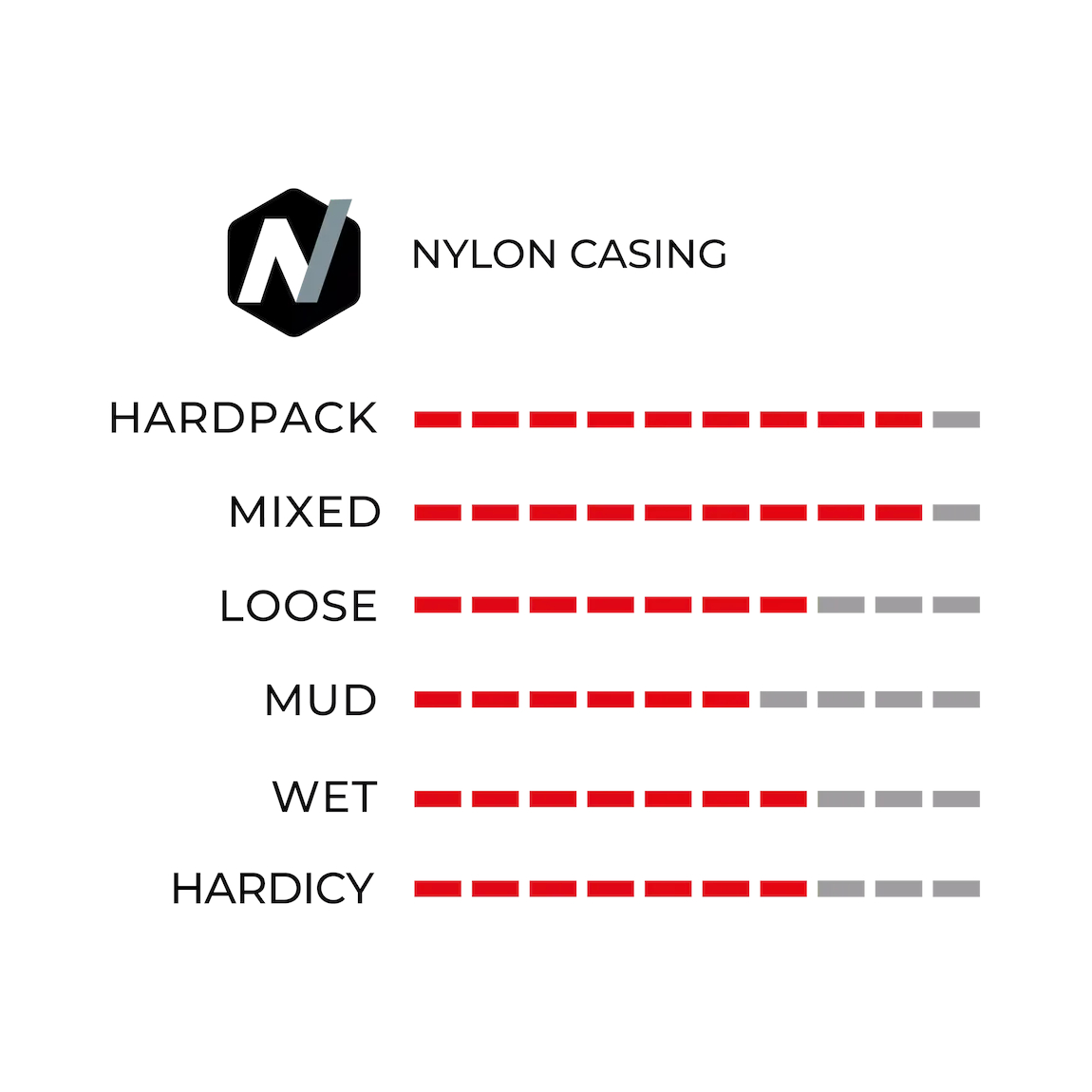 Esto se debe al diseño de la banda de rodadura con una línea central continua, que se desplaza lateralmente con extensiones en forma de laminillas para aumentar el número de bordes y puntos de contacto que conectan el neumático a la pista y lo impulsan en consecuencia. Los tacos de los hombros también tienen laminillas inclinadas hacia atrás para permitir curvas agresivas en superficies duras y resbaladizas. Para conseguir la durabilidad y la resistencia a los pinchazos necesarias, la cubierta plegable Tubeless Ready también combina una robusta pero flexible carcasa de nailon de 60 tpi con un compuesto de caucho reforzado con grafeno.