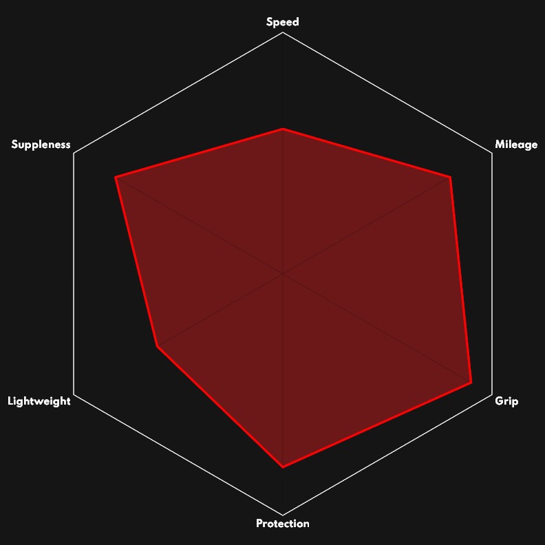 Este compuesto de alto rendimiento combina velocidad, control y durabilidad. El compuesto Graphene utilizado en la banda de rodadura central está formulado para minimizar la resistencia a la rodadura y los pinchazos, al tiempo que prolonga la vida útil del neumático.