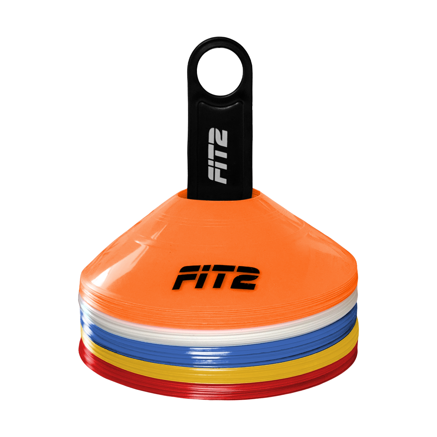 El set de 50 conos tortuga FIT2 es la herramienta perfecta para entrenamientos de velocidad, agilidad y coordinación en deportes como fútbol, rugby, hockey, entrenamiento funcional y más. Su diseño compacto de 2? (5 cm) de alto permite delimitar circuitos y marcar zonas de trabajo sin interferir en el movimiento de los jugadores.