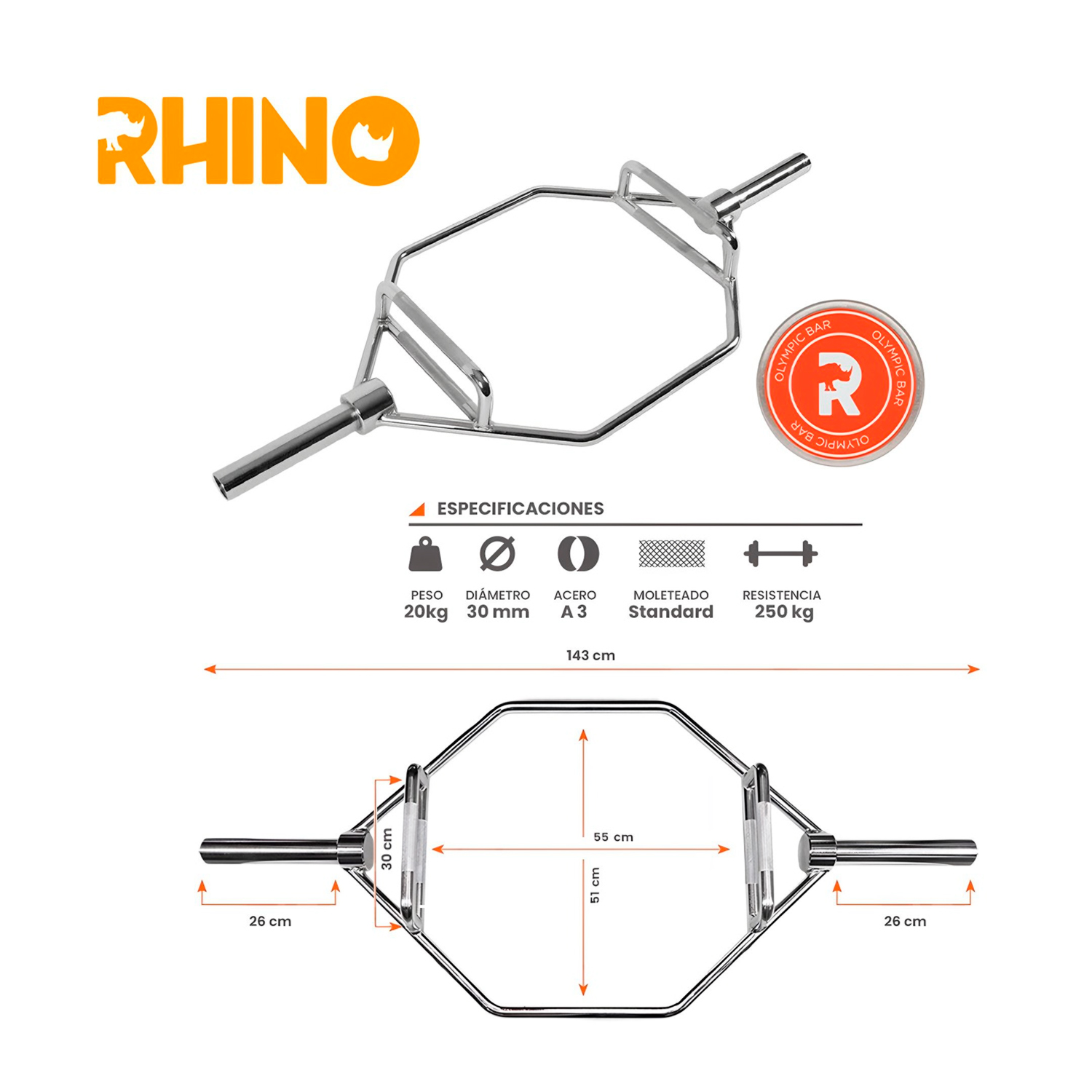 Barra Hexagonal Trap Bar Trampa Profesional 143cm RHINO