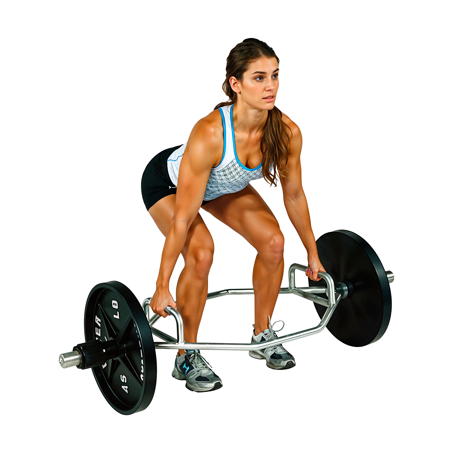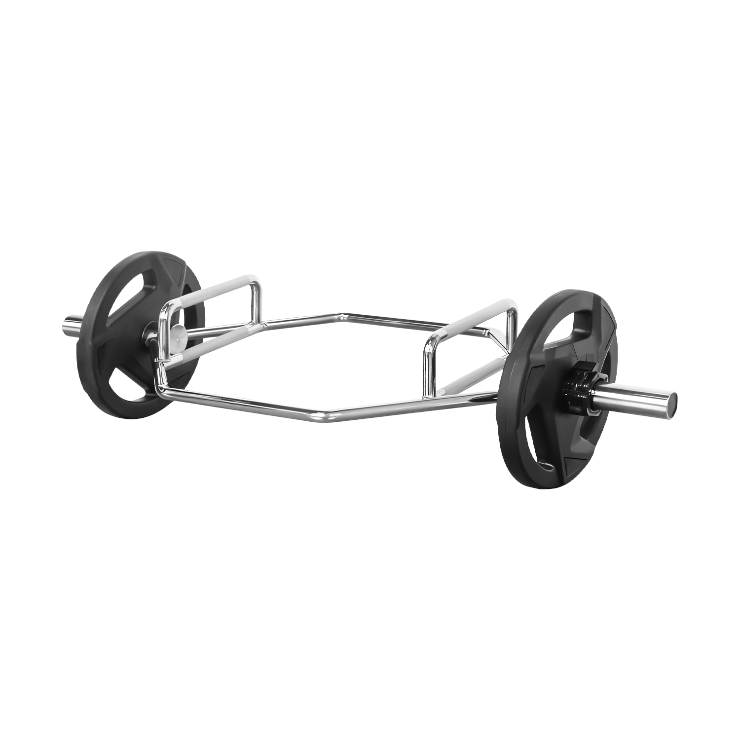 - La barra hexagonal distribuye el peso en línea, evitando sobrecargar la espalda.