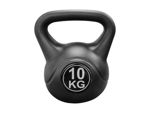 pesas rusas, entrenamiento en casa, pesas de cemento, recubiertas de plástico, pesas negras, ejercicios de fuerza, entrenamiento muscular, equipo de gimnasio, pesas compactas, pesas resistentes