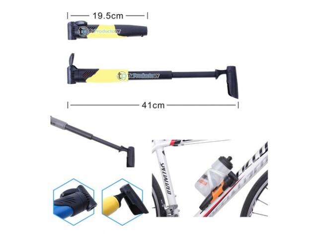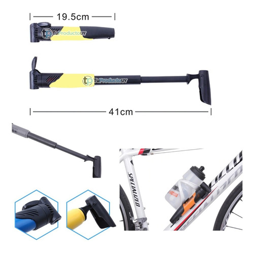 Inflador portátil con manómetro integrado, apto para válvulas Presta y Schrader, ideal para ciclistas que buscan precisión y portabilidad.