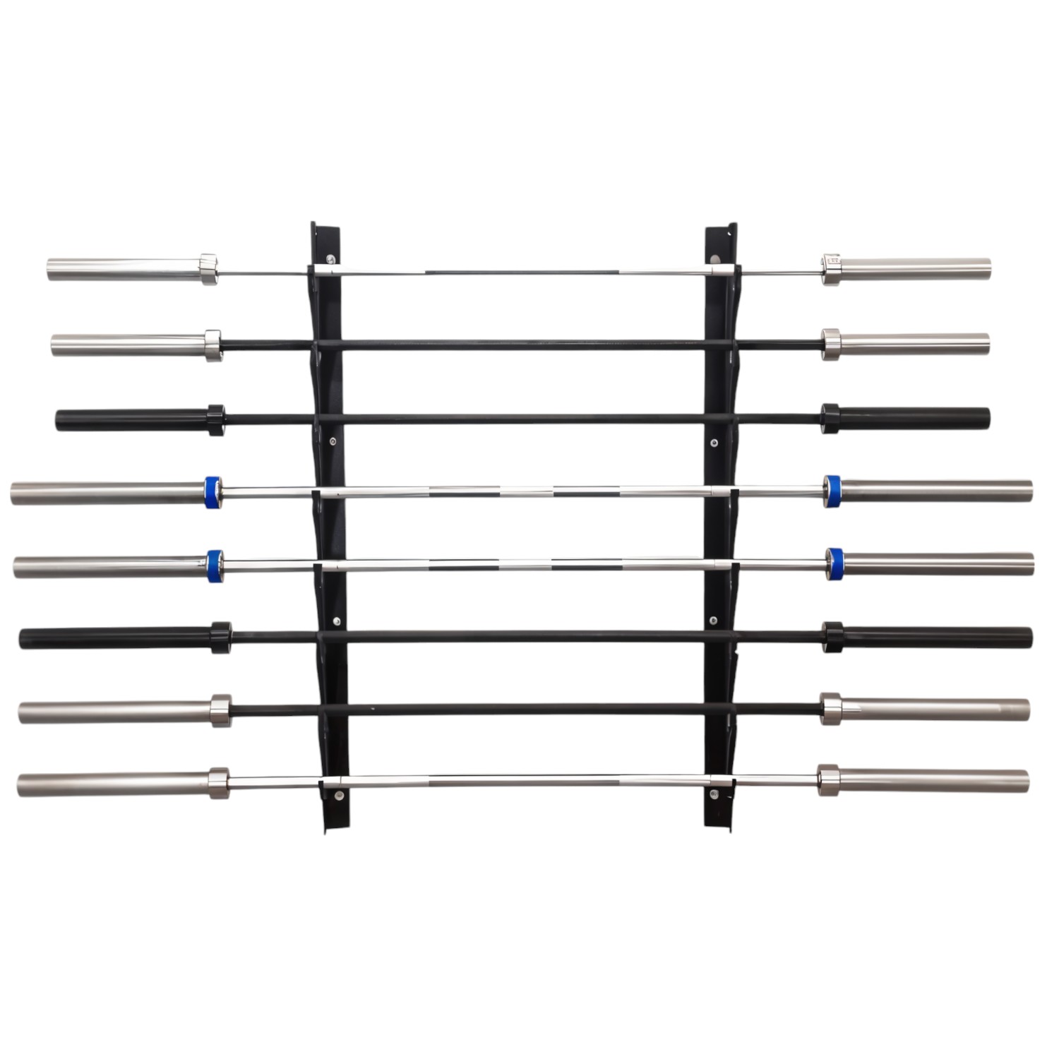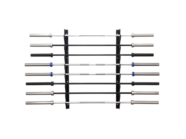 organizador de barras olímpicas, soporte horizontal de pared, rack mural para barras, almacenamiento para gimnasio, soporte metálico resistente, organizador de barra profesional, accesorio de orden para entrenamiento, colgador de barras olímpicas, soporte para gimnasio comercial, equipo de organización para Crossfit