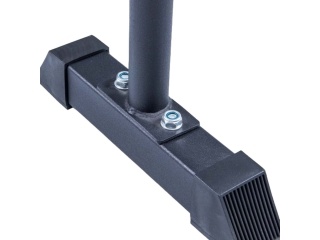 La estructura está diseñada para soportar hasta 150 kg, gracias a un diámetro de tubo de 38 mm y un grosor de 2,3 mm que garantiza alta dureza y resistencia. Además, los pies de apoyo cuentan con base antideslizante fabricada en goma que protege el piso y asegura la estabilidad, evitando movimientos no deseados durante la ejecución de los ejercicios.